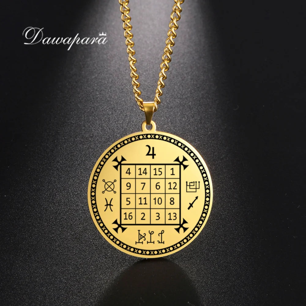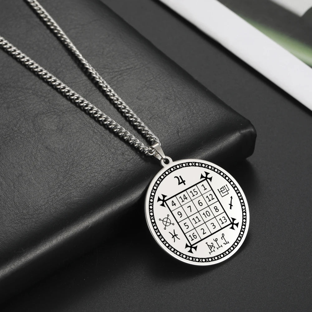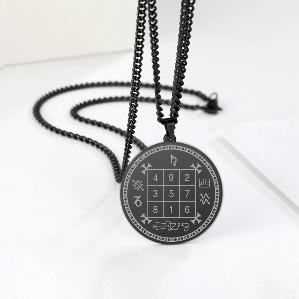 Solomon Saturn Jupiter Pendant Square Talisman Necklace Stainless Steel.