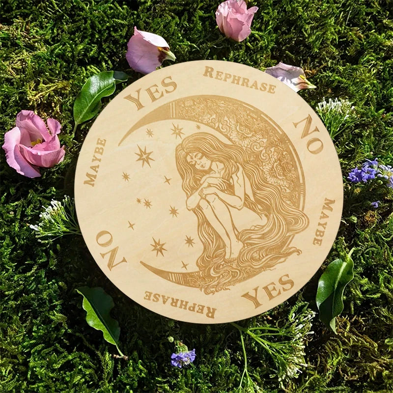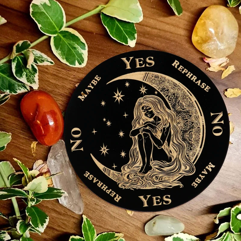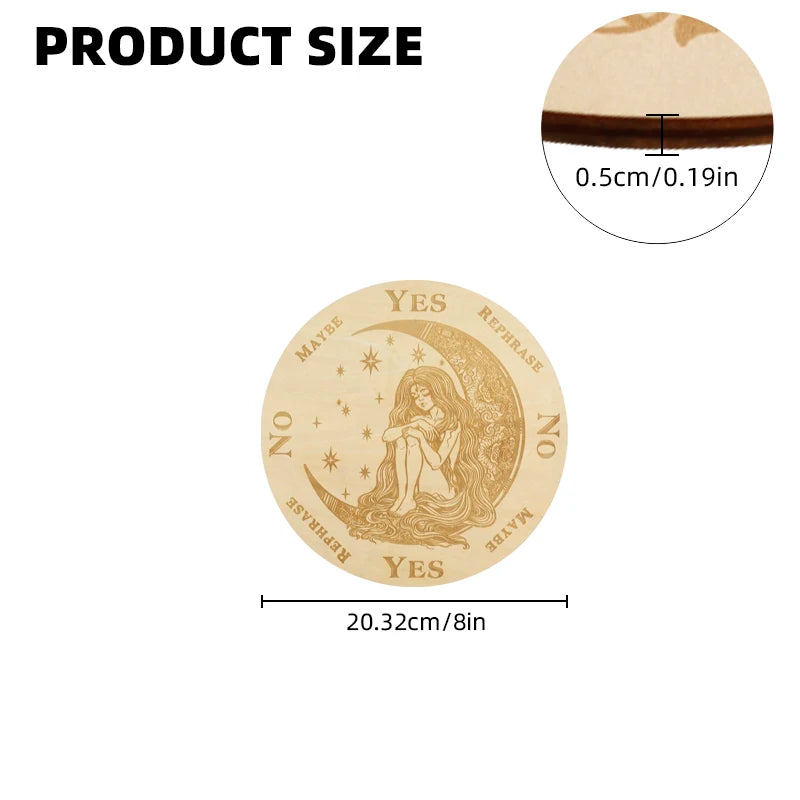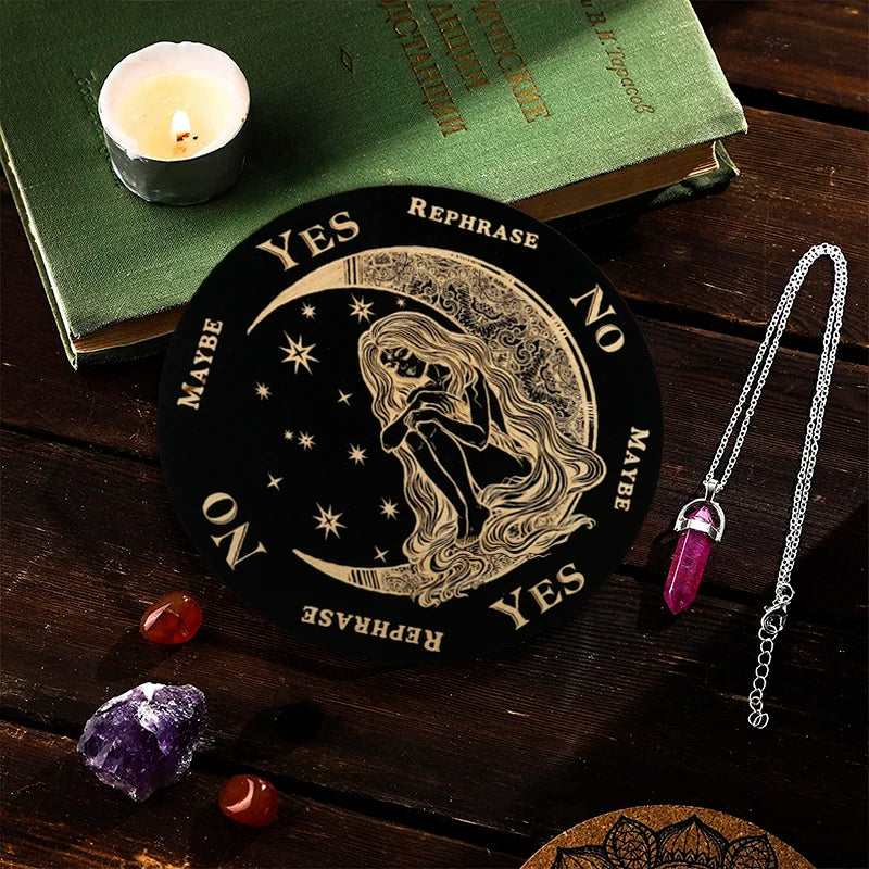 Unlock the wisdom of your intuition with our beautifully crafted pendulum board. Designed to work in harmony with your favourite pendulum, this board features classic response markers like yes no maybe and rephrase, make it the perfect tool for quick answers and deep divination.