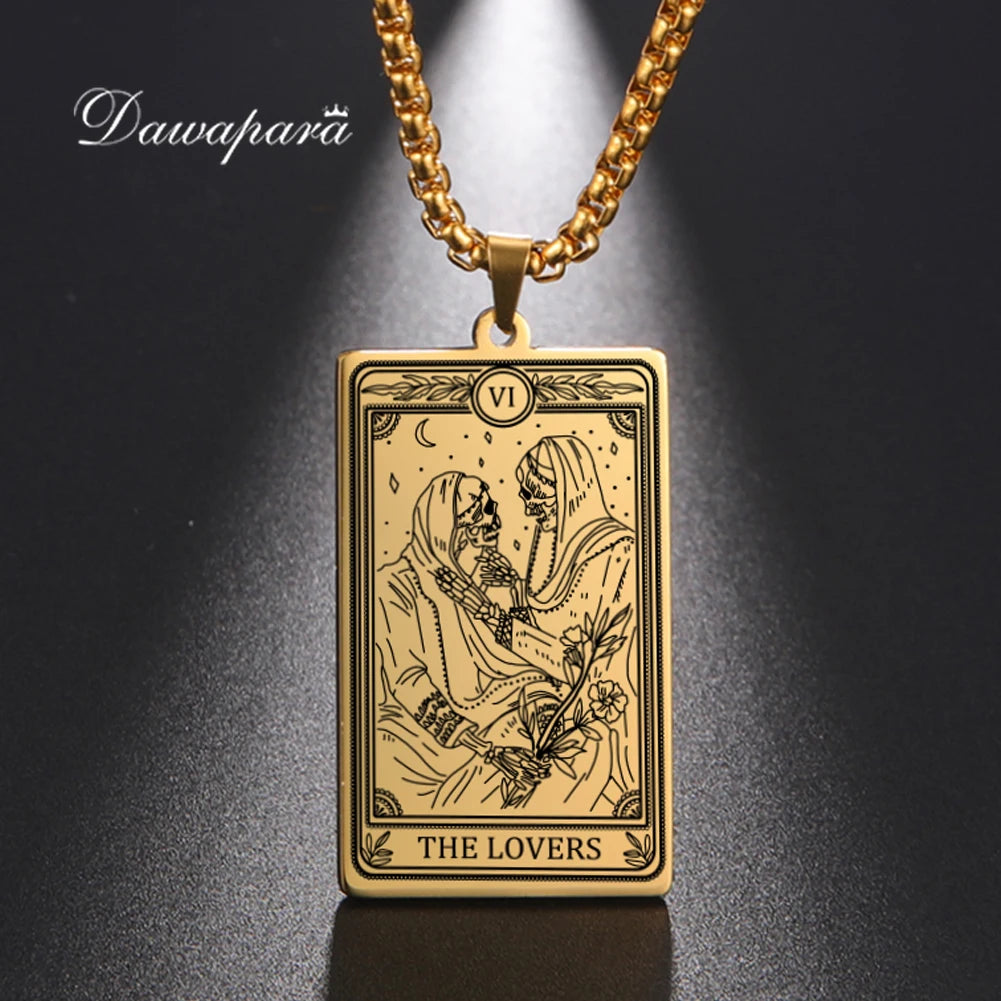 Where the wisdom of the cards and tarot necklace brings the magic of divination into your daily style. Featuring a timely detailed tarot card charm each one representing powerful archetypes and spiritual truths this piece is perfect for those who walk the path of intuition and insight whether you're drawn to the moon, the star, the lovers, or another card close to your heart, this necklace is more than jury. it's a wearable reminder that the answers you seek are always within.